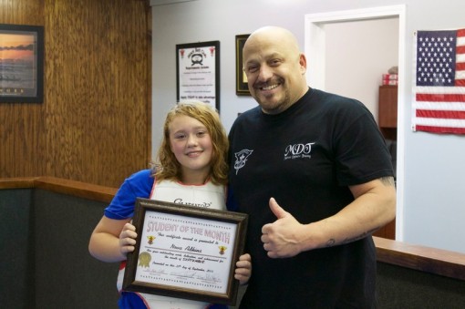 Congratulations to the September 2013 Student of The Month Recipient Nova Adkins. Nova has shown outstanding technique in her martial arts skills. She has also been an excellent participant of sparring class. Nova not only continues to set an example for other students, but also serves as an excellent role model for her younger sister Veda. Congratulations Nova!!